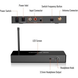 What you get: Packing list: 1* transmitter, 1* bodypack receiver, 1* in-Earphones, 1* silicone ear tips(S, M, L), 1* ø3.5mm Audio Cable, 1* RCA Audio Cable, 1* 12V/300mA Adapter, 1* User Manual, 1* ø3.5mm to 6.3mm Plug