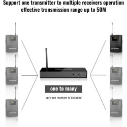Humanized design: HD LED screen shows the current battery level, channel, and connect status for you. Lightweight bodypack receiver, easy to carry with volume control on the go. Bodypack receiver work with 2 pcs AA batteries for up to 6 hours continuously.